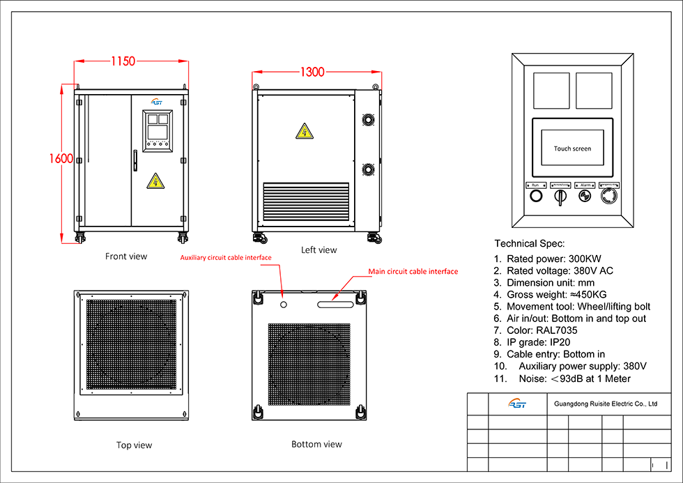 RST Electric fornisce un banco di carico da 300 kW 380 V ad alta capacità, realizzato per una rigorosa convalida del sistema di alimentazione CA. Progettato per test su generatori su larga scala, messa in servizio di UPS e applicazioni di alimentazione industriale, questo banco di carico CA da 300 kW e 380 V offre un carico resistivo preciso con controllo avanzato dei passi e molteplici funzionalità di protezione. La sua struttura robusta e il raffreddamento ad aria forzata consentono il funzionamento continuo a pieno carico, mentre l'intuitivo HMI e le interfacce di comunicazione remota (RS485/Modbus) forniscono un controllo flessibile. Affidati a RST Electric per soluzioni di banchi di carico affidabili e personalizzate, supportate da anni di esperienza nella produzione. Richiedi un preventivo oggi per opzioni di tensione e custodia personalizzate.